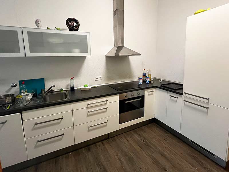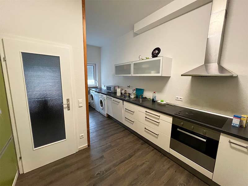 Die Wohnung ist möbliert und bezugsfertig, so dass Sie einfach und Ihr Zimmer beziehen können. Eine Einbauküche mit Herd + Backofen und Kühlschrank, Waschmaschine, Trockner sind ebenfalls vorhanden. Parken kann man kostenlos direkt an der Straße.